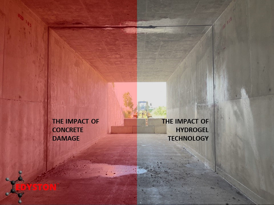 - As the EDYSTON and the cementitious pore solution reach a dynamic equilibrium, the hydrogel starts forming.
