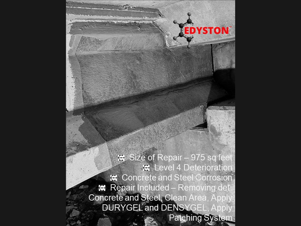 - Successive application of the EDYSTON increases the rate and volume of the silica hydrogel to fill the pours, voids, and cracks within the deteriorated concrete.